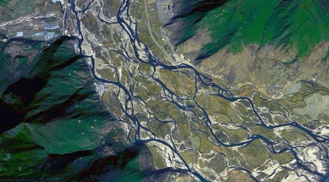 (1)最典型代表:青藏高原及其周边河流(如雅鲁藏布江上游、怒江上游、澜沧江上游)。夏季冰川融水带来洪水,携带大量冰碛物和风化碎屑;冬季流量极小,泥沙大量堆积形成辫状河。