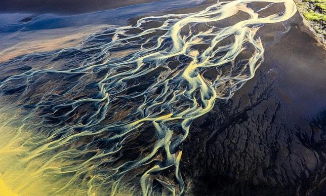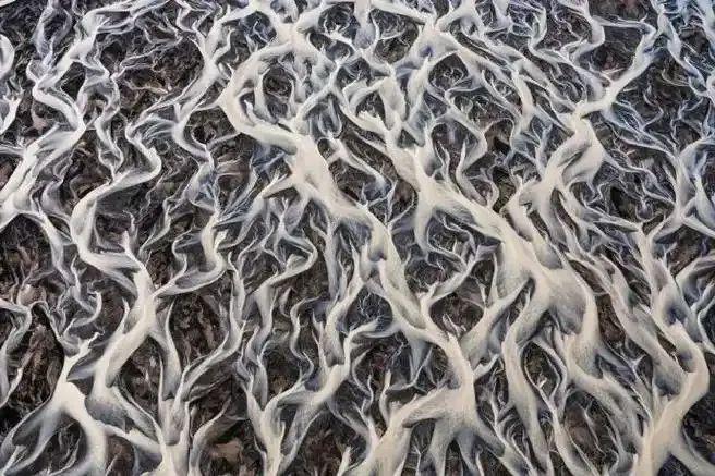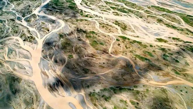 1.定义:辫状水系是指河道被众多沙洲(心滩)分割成若干股汊流,且汊流时分时合、频繁摆动的河型。汊流之间相互交织,形似“辫子”,故得名。
